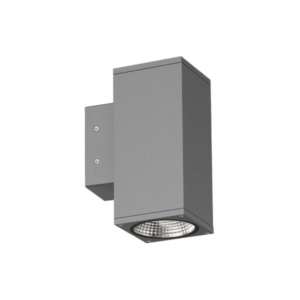 Luminaire surface du mur pour application extérieur, avec projection de lumière descendant et ascendant. Corps en aluminium. Diffuseur prismatique. Driver intégré.