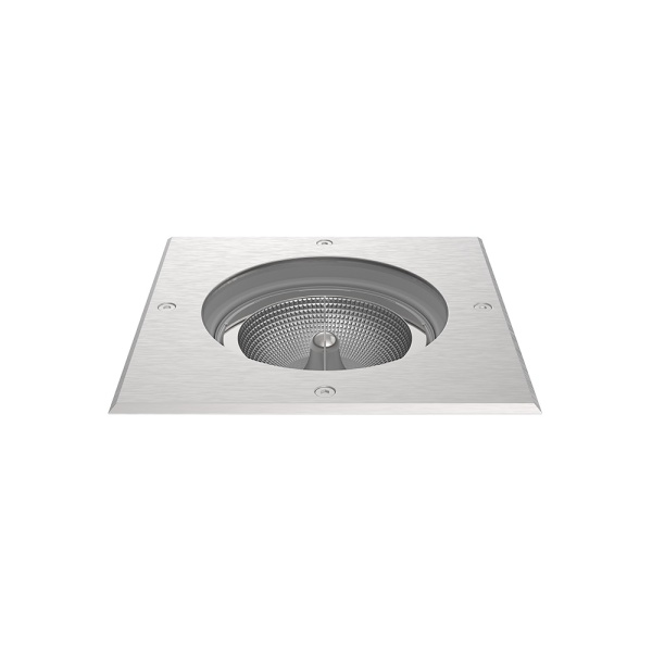 Luminaire encastré de sol avec cadre pour application extérieur, avec projection de lumière ascendant. Collorette extérieur en acier inoxydable. Corps en polyamide. Verre trempé. Boite d’encastrement en polyamide. Cette installation nécessite un espace de drainage avec gravier avec au moins 20 cm.