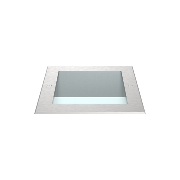 Luminaire encastré de sol avec cadre pour application extérieur, avec projection de lumière ascendant. Collorette en acier inoxydable. Corps en aluminium injecté. Verre trempé. Boîte d’encastrement en ABS incluse. Cette installation nécessite un espace de drainage avec gravier avec au moins 20 cm.