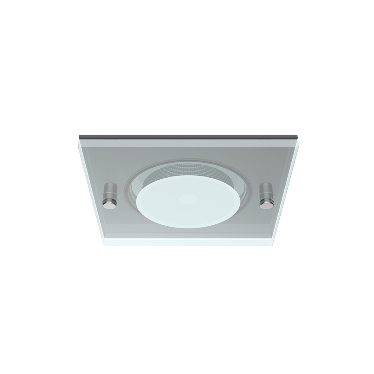 Luminaire encastré avec cadre pour application intérieur, avec projection de lumière descendant. Corps en zamak avec possibilité de peinture en différentes couleurs. Verre trempé de 4mm épaisseur inclus.