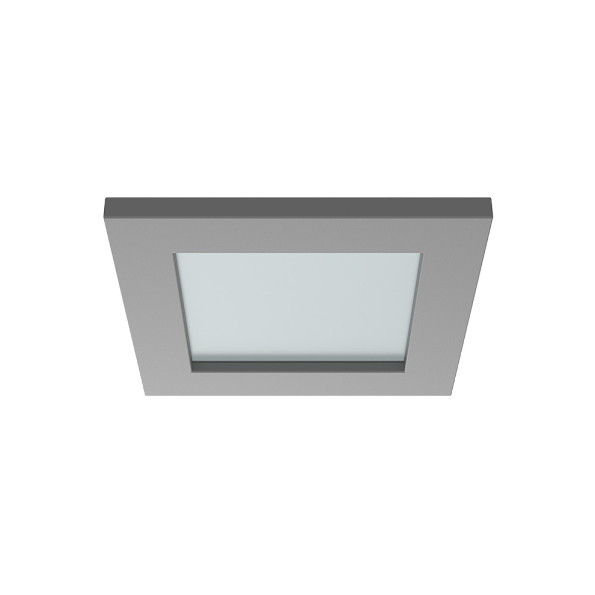 Luminaire encastré avec cadre pour application intérieur, avec projection de lumière descendant. Jante en acier inoxydable brossé ou en aluminium peint.