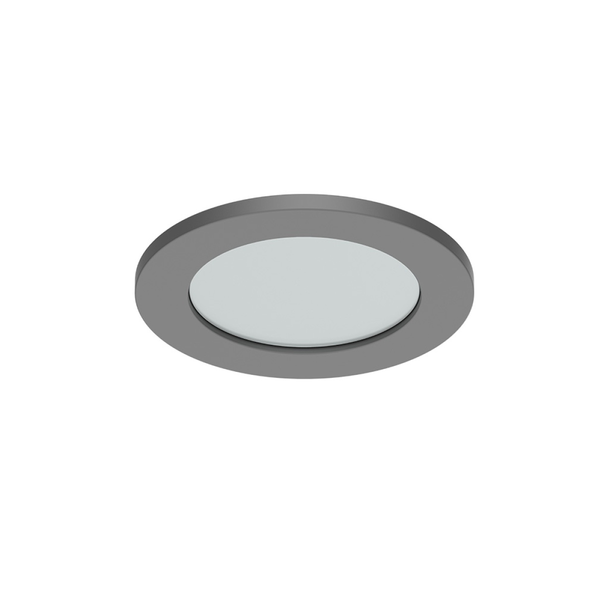 Luminaire encastré avec cadre pour application intérieur, avec projection de lumière descendant. Collorette extérieur en aluminium peint. Diffuseur en verre givré.