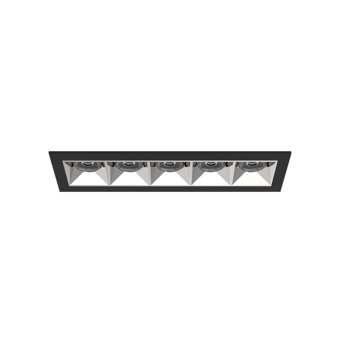 Luminaire encastré avec volet de finition pour l’intérieur, avec projection de lumière vers le bas. Corps extérieur en aluminium. Driver à distance.