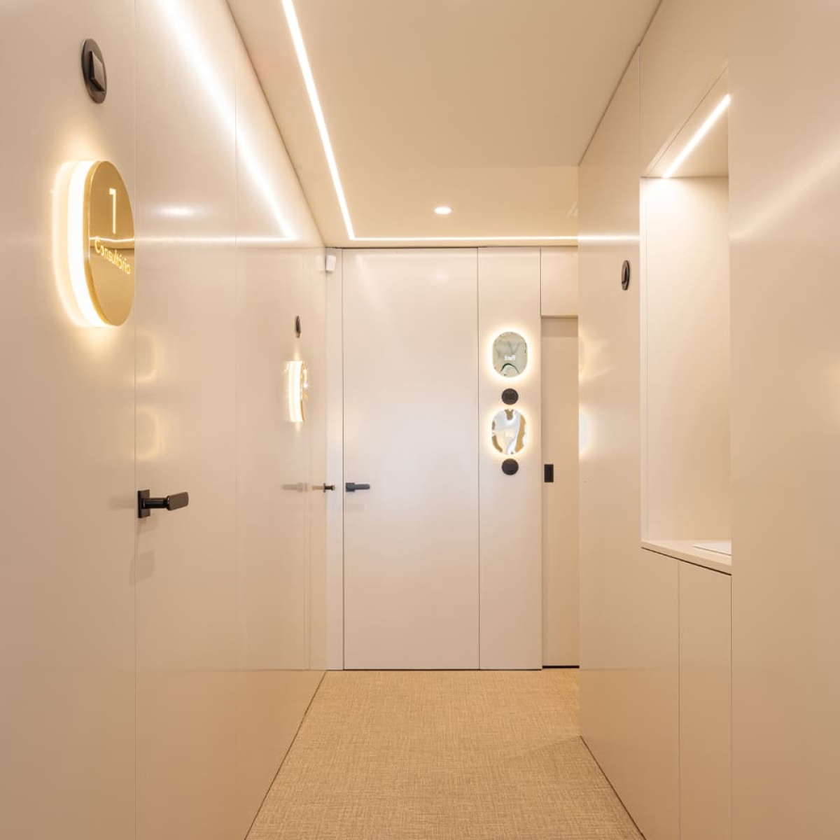 Luminaire encastré sans cadre pour application intérieur, avec projection de lumière descendant. Corps en aluminium extrudé avec possibilité de peinture en différentes couleurs. Diffuseur en polycarbonate. Driver intégré. Possibilité d’ajouter différents accessoires modulaires.