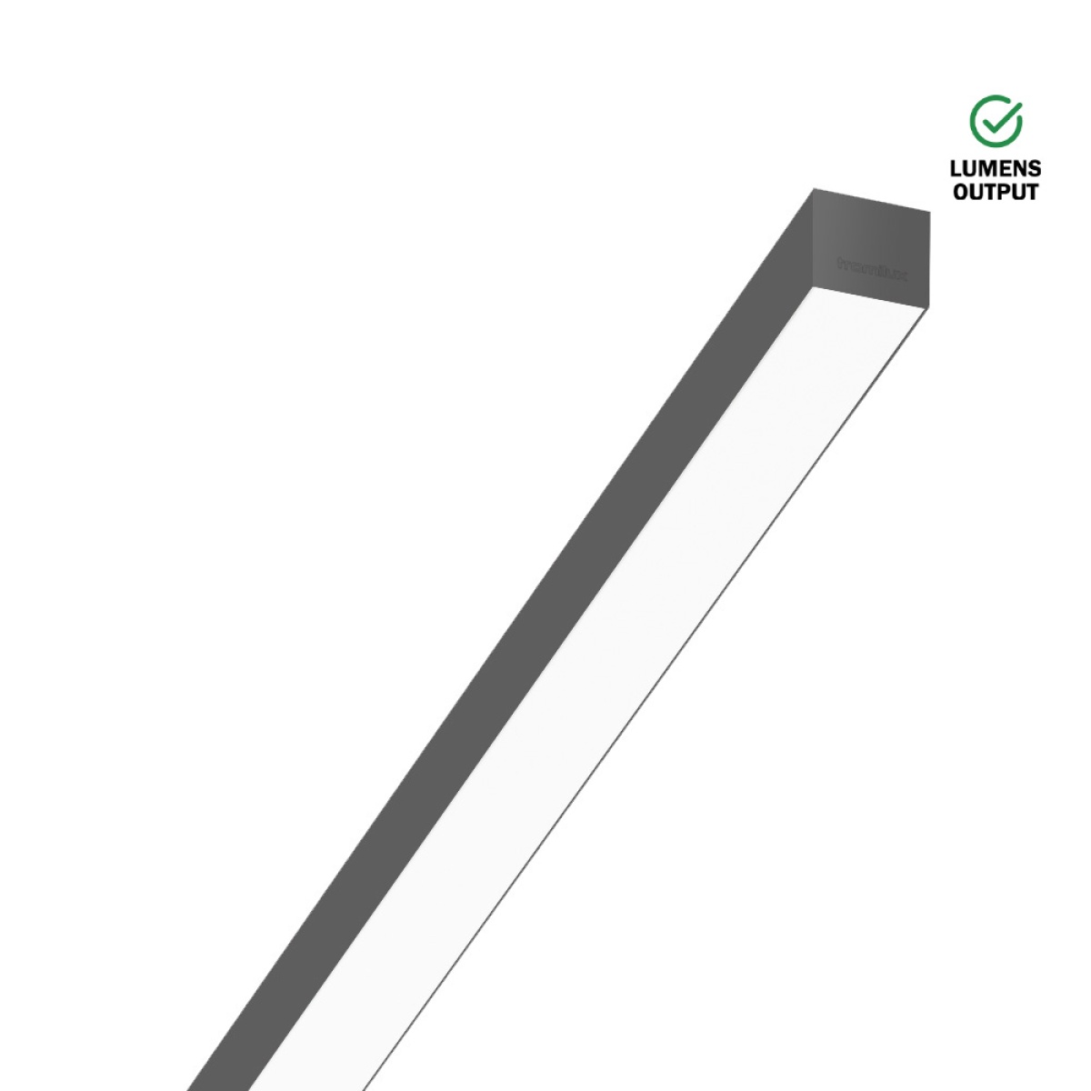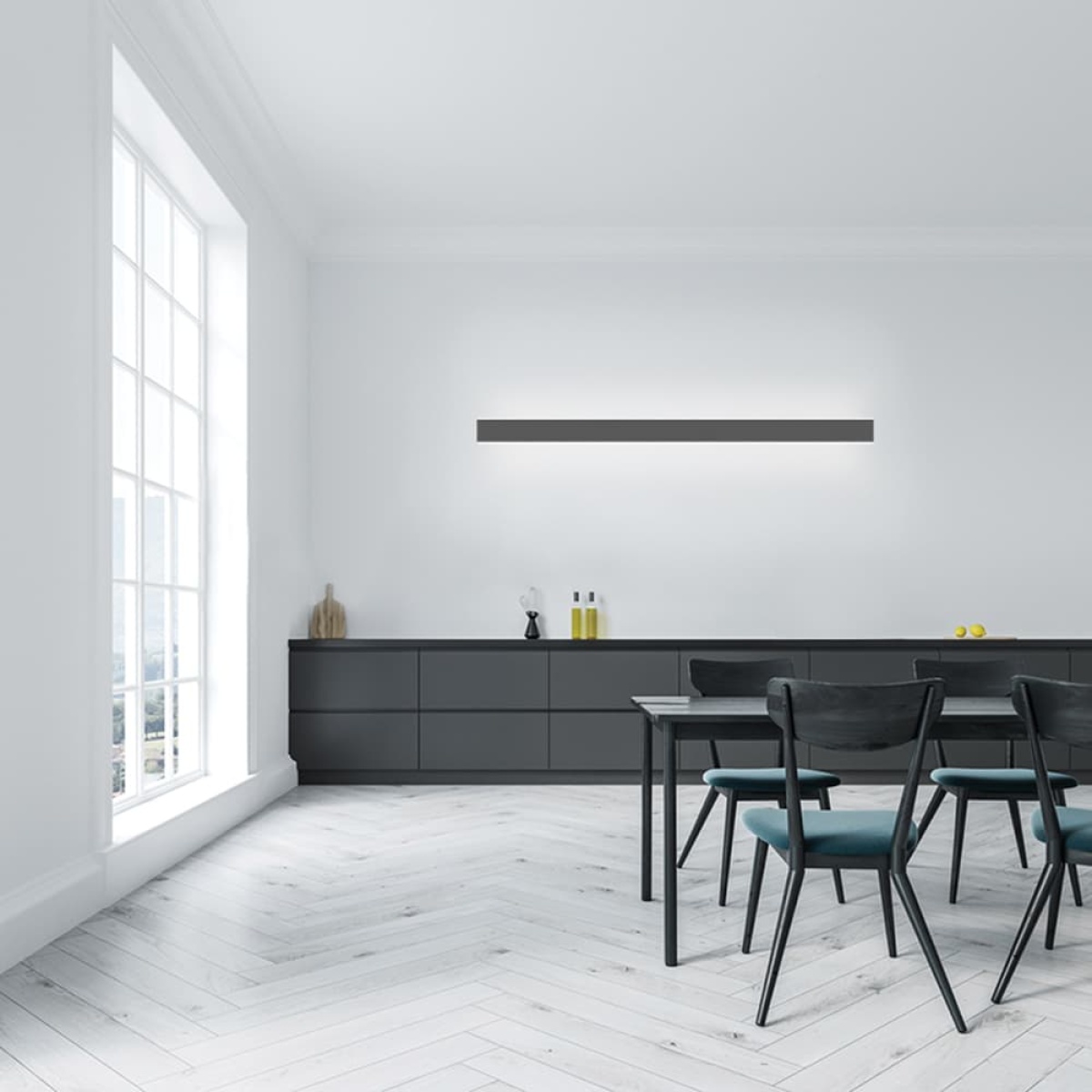 Luminária saliente de parede para aplicação em espaços interiores, com projeção de luz descendente ou ascendente. Corpo em alumínio extrudido com possibilidade de pintura em diversas cores. Difusor em policarbonato opalino ou prismático. Driver incorporado.