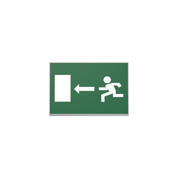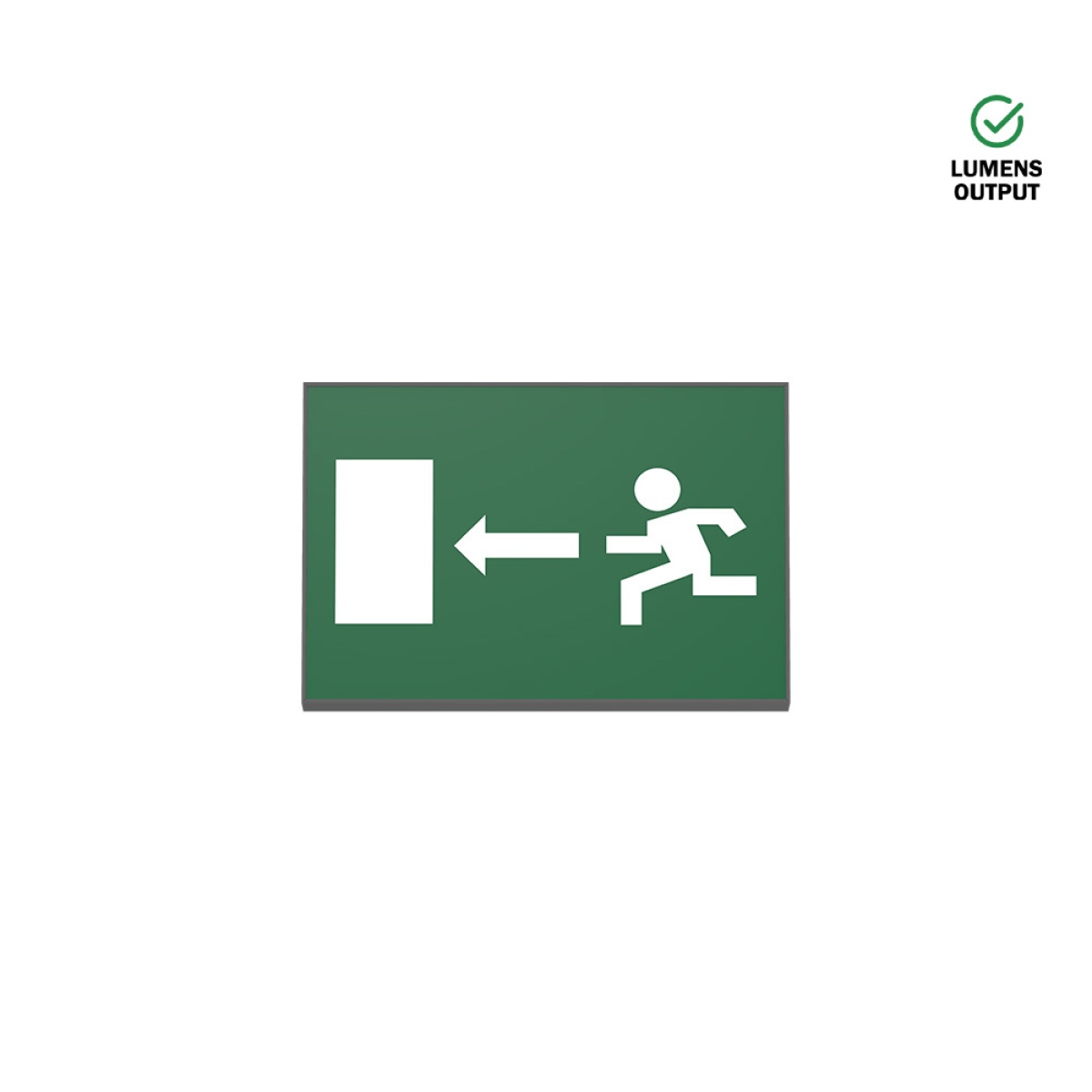 Luminária de emergência saliente de parede, para aplicação em espaços interiores, com projeção de luz descendente. Corpo em alumínio injetado com possibilidade de pintura em diversas cores. Difusor em acrílico com pictograma à escolha. Driver incorporado.