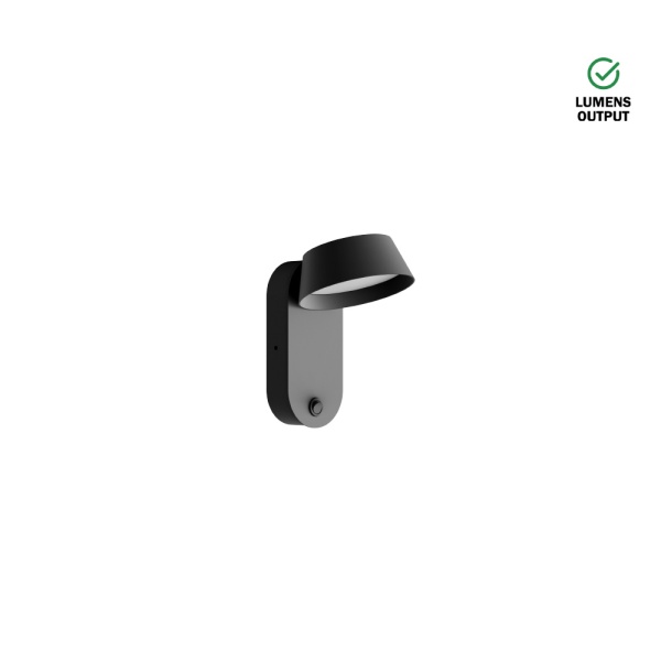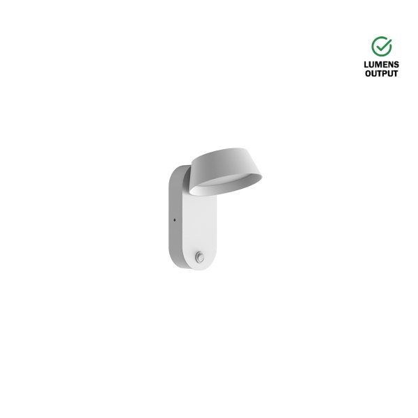 Luminária saliente de parede para aplicação em espaços interiores, com projeção de luz orientável. Corpo em alumínio pintado. Driver incorporado.