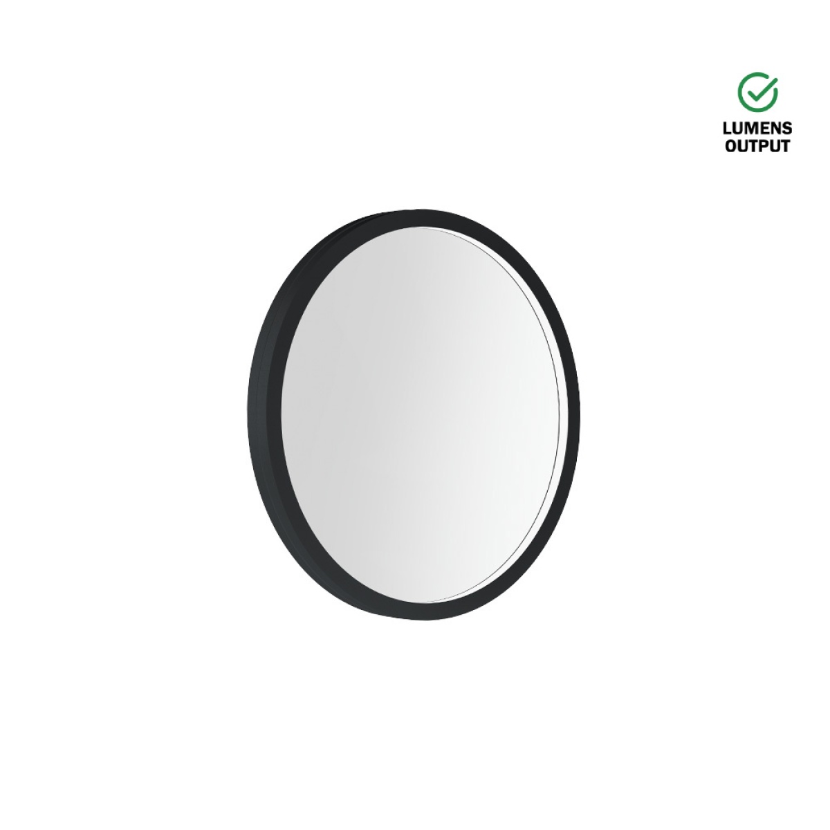 Espelho redondo de parede com projecção de luz interior para aplicação em espaços interiores. Driver incorporado.