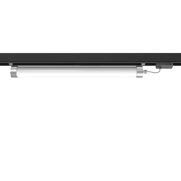 Projetor para aplicação em calha trifásica 230V em espaços interiores, com projeção de luz descendente. Difusor opalino. Driver incorporado.