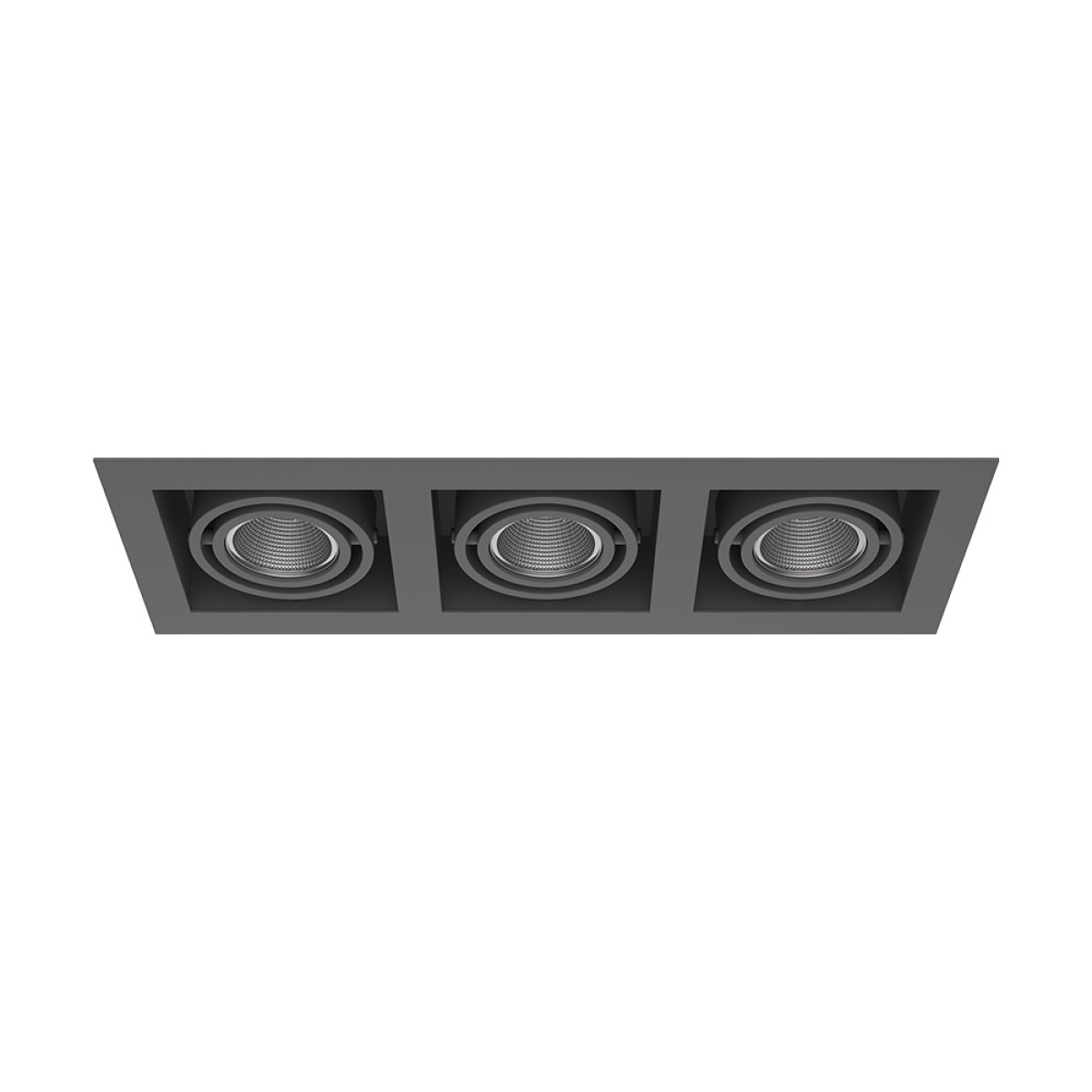 Luminária de encastrar com aba de remate para aplicação em espaços interiores, com projeção de luz orientável. Aro em aço inox escovado ou pintado. Corpo em chapa de aço galvanizado pintado.