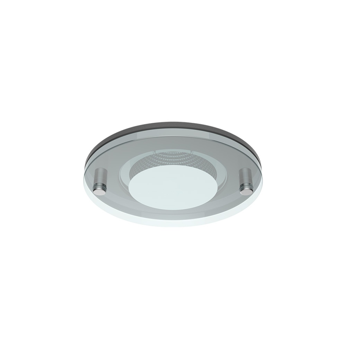 Luminária de encastrar com aba de remate para aplicação em espaços interiores, com projeção de luz descendente. Corpo em aço inoxidável escovado ou pintado, com possibilidade de pintura em diversas cores. Vidro temperado com 4mm de espessura, incluído.
