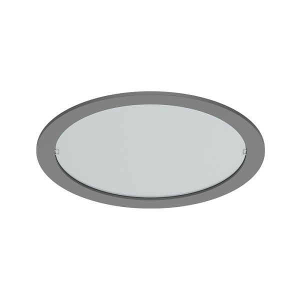 Luminária de encastrar no teto, com aba de remate, para aplicação em espaços interiores, com projeção de luz descendente. Aro em zamac. Driver remoto.