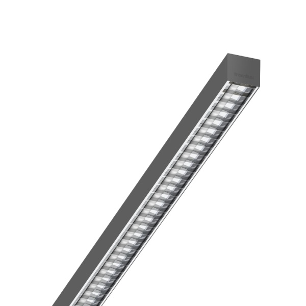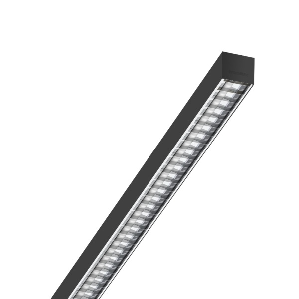 Luminária saliente para aplicação em espaços interiores, com projeção de luz descendente. Corpo em alumínio extrudido com possibilidade de pintura em diversas cores. Difusor em policarbonato. Driver incorporado.