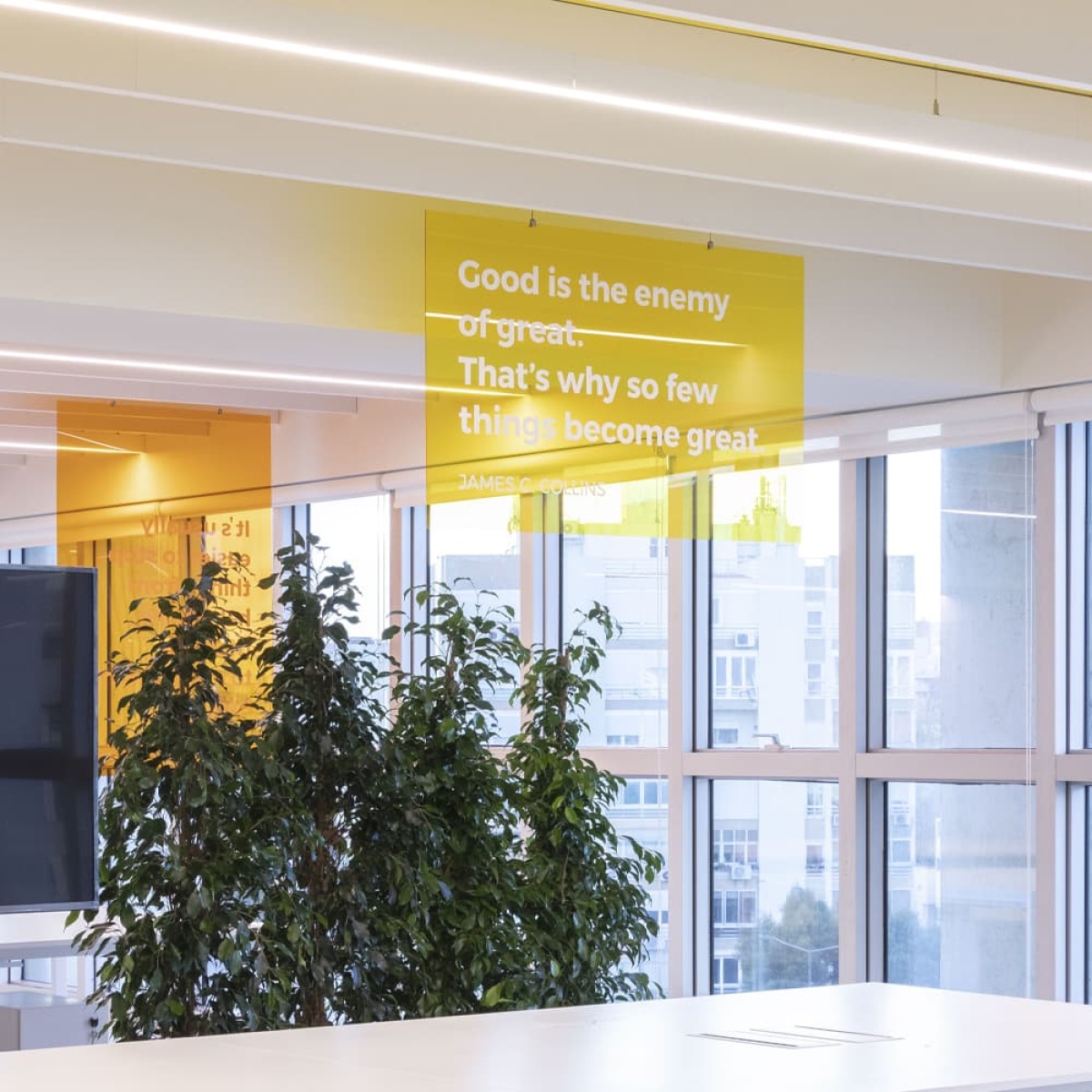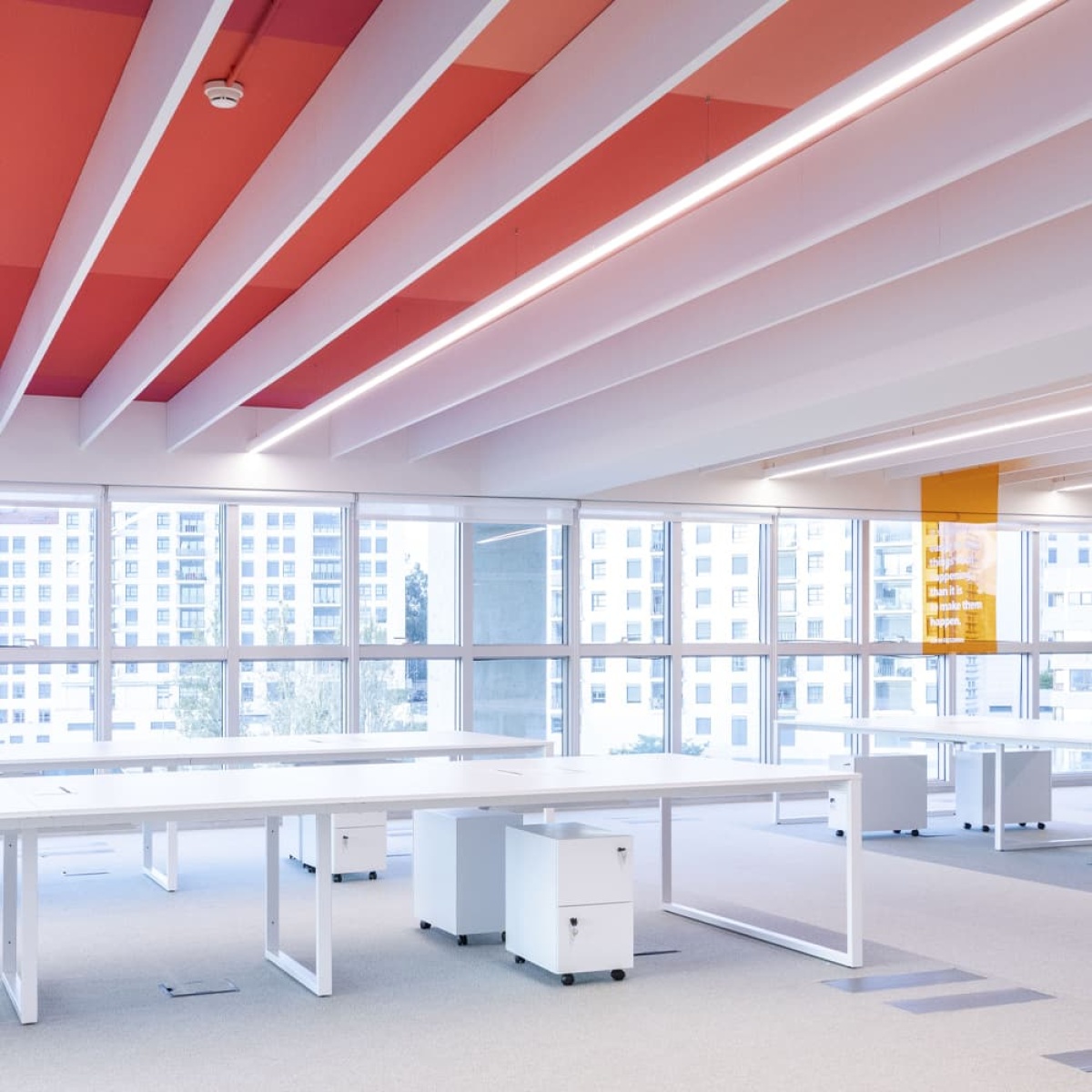 Luminária suspensa para aplicação em espaços interiores, com projeção de luz descendente e ascendente. Corpo em alumínio extrudido com possibilidade de pintura em diversas cores. Difusor em policarbonato opalino, prismático ou black. Driver incorporado. Florão standard: saliente redondo.